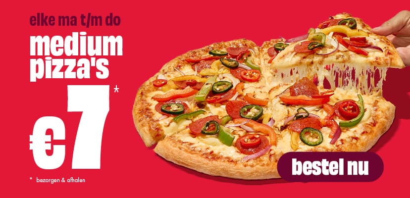 Van 6 april t/m 28 juni 2026 ontvang je medium pizza's voor slechts €7!